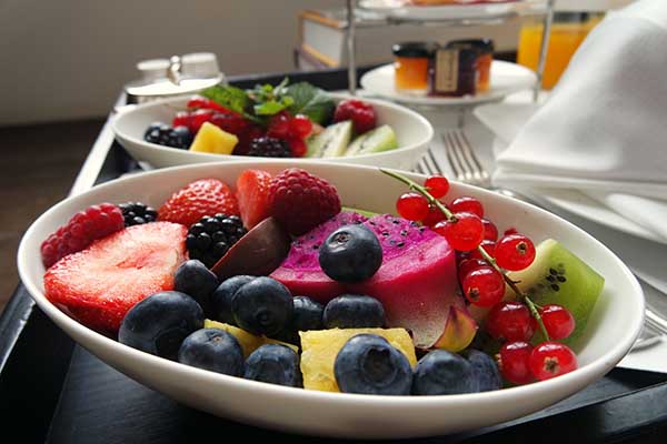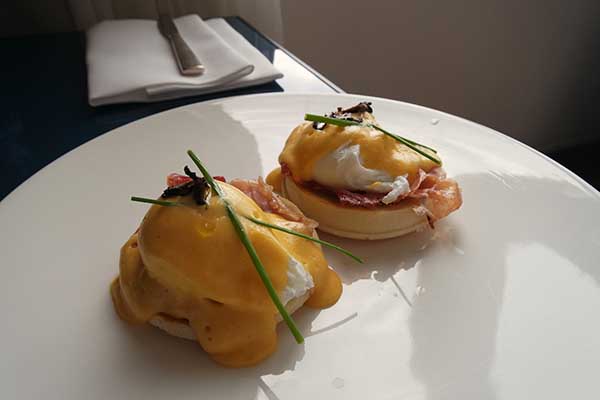 Als ik in hotels logeer bestel ik altijd roomservice als ontbijt. En dat kan ik je bij het Conservatorium Hotel zeker aanraden. Een heerlijke selectie van zoetigheden, de mooiste fruitsalade die ik ooit heb gegeten en eieren zoals jij ze wilt. Ik ga voor de blini met zalm en roerei. Super goed!