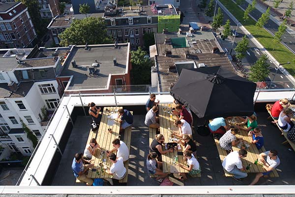 Eén van de dingen die het Volkshotel super populair maakt bij locals is de te leuke rooftop op de 7e verdieping. Canvas op de 7e is het restaurant met rooftop bar waar je lekker met vrienden kunt afspraken voor drankjes of diner. Super lekker eten voor heel zachte prijzen (duurste gerecht € 16,50). Lees hier Yourlbb’s blog over restaurant Canvas op de 7e. Het uitzicht over Amsterdam Oost bij de zonsondergang is echt te gek!