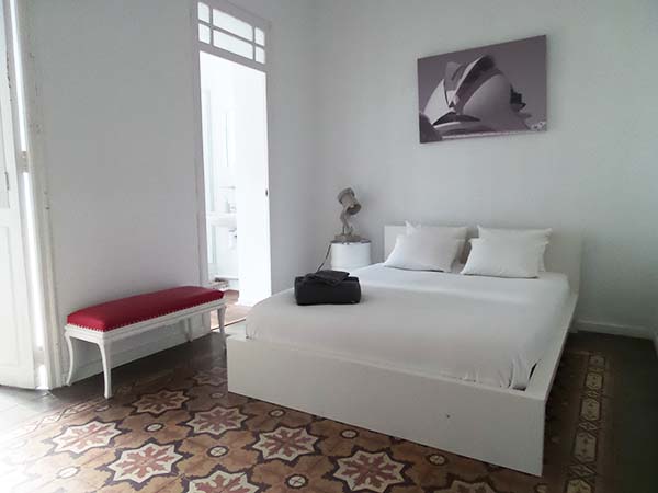 Wij logeerden in een mooie lichte kamer met enorme ramen en zich op de tuin. Bij aankomst stond er een flesje Cava op de kamer! Perfecte start van onze trip in Valencia :-).