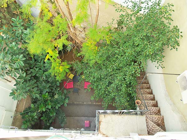 ABCyou in Valencia heeft ook een knusse tuin. De kames in het souterrain hebben openslaande deuren naar deze binnenplaats. Een fijne plek om aan het einde van de middag lekker buiten te zitten met een wijntje en lekker hapjes van de Mercado Central, want de tuin kan door alle gasten gebruikt worden.