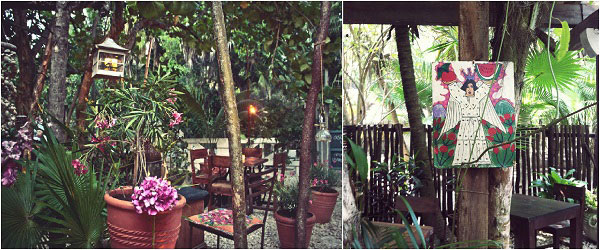 Wat een sfeervolle en mooie plek. Zeer hotspot waardig. Op zijn minst zou ik zo zeggen. Denk romantische Franse tuin meets hippe Caribische spot. Je wordt omringd door veel groene planten, bloemen, hier en daar wat kunst en veel kaarsjes. Waarschijnlijk een goed idee om muggenspray op te doen.