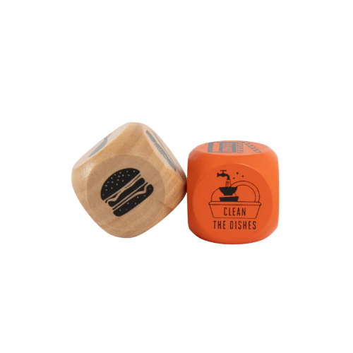 Deze dobbelstenen zijn een grappig kleinigheidje voor in de schoen met Sinterklaas of voor tijdens een dobbelspel. De set bestaat uit twee dobbelstenen: eentje met afhaalmaaltijden en eentje met leuke activiteiten.