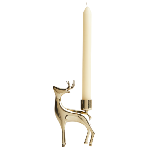 Deze gouden rendier kaarshouder past perfect in het kerstthema. Mooi op de eettafel tussen je kerstdinerkaarsen, maar net zo leuk in een kerststukje met dennengroen.