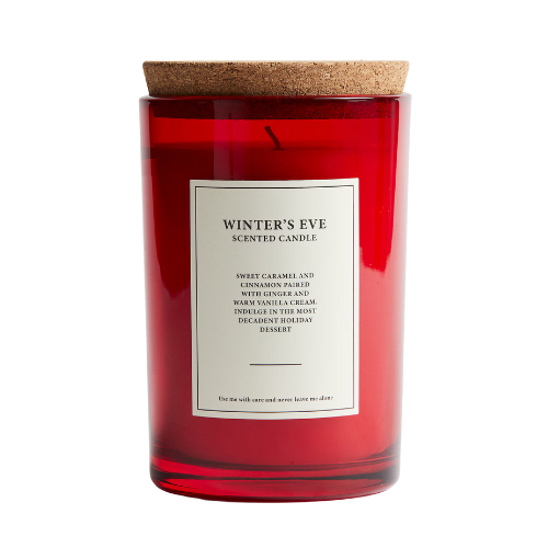 Hoe fijn is het wanneer één kaars je hele huis in winterse gezelligheid hult? Deze grote geurkaars van H&M Home verspreidt een warme, winterse geur die meteen een knus gevoel geeft. De glazen houder met kurken deksel staat mooi in elk interieur en met 80 branduren doe je er lekker lang mee.