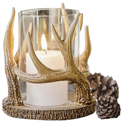 Dit windlicht met gewei-accenten is zo’n stuk dat meteen de wintersfeer in huis brengt. De handbeschilderde details geven een landelijke touch. Handig: je haalt het glas er zo uit om een kaars neer te zetten. Mooi op de eettafel tijdens een diner, maar net zo fijn op een dressoir of bijzettafel.