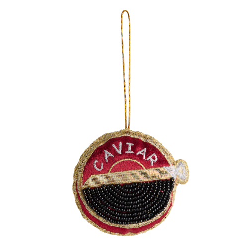 Hoe leuk is deze kaviaar kerstboomhanger? Helemaal gemaakt van glinsterende kraaltjes en pailletten, waardoor hij meteen opvalt tussen je andere ornamenten. Het glitterkoordje maakt ’m extra feestelijk. Een speels en origineel item dat je boom nét dat verrassende detail geeft waar je blij van wordt.