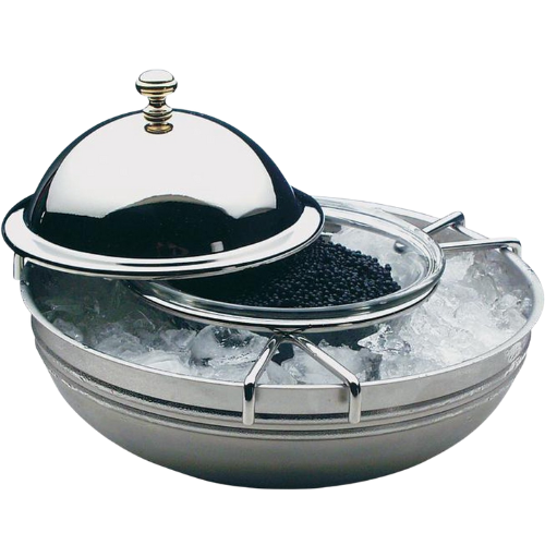 Voor wie van luxe houdt en zijn kaviaar graag stijlvol presenteert, is deze mooie kaviaarkoeler een echte aanwinst. Deze professionele koeler van hoogwaardig roestvrij staal houdt kaviaar perfect op temperatuur, zodat de smaak optimaal blijft. Het ontwerp met vier compartimenten is chic én functioneel, ideaal voor een feestelijke avond of een mooi gedekte tafel.