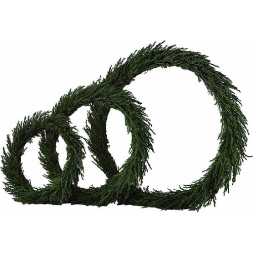 Deze set van drie kransen is zo’n vondst waar je alle kanten mee op kunt. Het frisse groen blijft prachtig, waardoor je ze het hele jaar door kunt gebruiken. Hang er één aan de deur en kleed ’m aan met de geruite strikken hierboven, of leg ze als groep op tafel met kaarsen ertussen voor een sfeervol centerpiece. Hoe ga jij ze stylen dit seizoen?