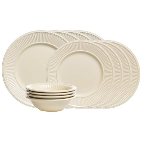 Deze 12-delige serviesset van Wedgwood is zo’n tijdloze klassieker die je tafel meteen een rustige, stijlvolle basis geeft. De crème tint en het subtiele ribbelpatroon passen bij elke gelegenheid. Extra fijn: het servies kan gewoon in de vaatwasser én magnetron.