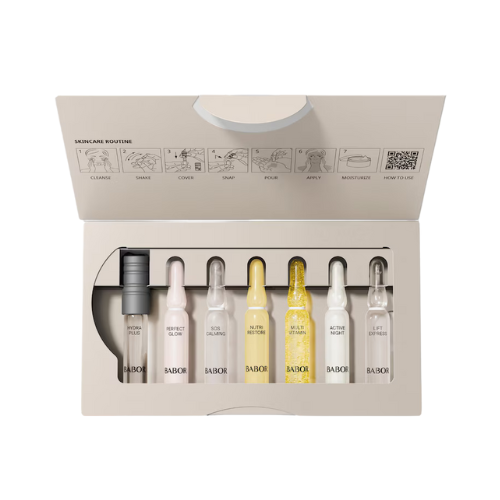 Gun jezelf een week pure luxe met de Perfect Skin 7-daagse ampullenkuur van BABOR. Deze intensieve behandeling zit vol hooggeconcentreerde serums die je huid hydrateren, verstevigen en laten stralen. Elke dag een nieuw flesje vol verzorging, het ultieme selfcare moment waarmee je huid in no time weer fris, glad en glowy aanvoelt.
