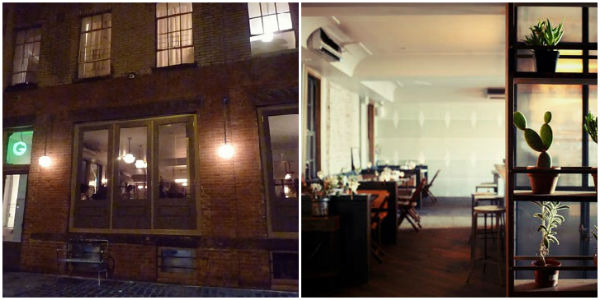 Dit nieuwe restaurant in het noorden van Greenpoint zit op een te gekke locatie in een oud groot pand. En hoe cool is het ook van binnen. Ze hebben kleinere tafeltjes, maar ook gezellige ronde tafels voor 6 aan de andere kant van de ruimte. Er staat een grote bar in het midden. De lichtgroene muren en prachtige houten vloer geven het een rustieke en warme uitstraling. En de ruige bakstenen muren zijn te gek. Ik weet niet of ze altijd jaren 80 muziek draaien, maar je had me al bij “Girls just wanna have fun”…