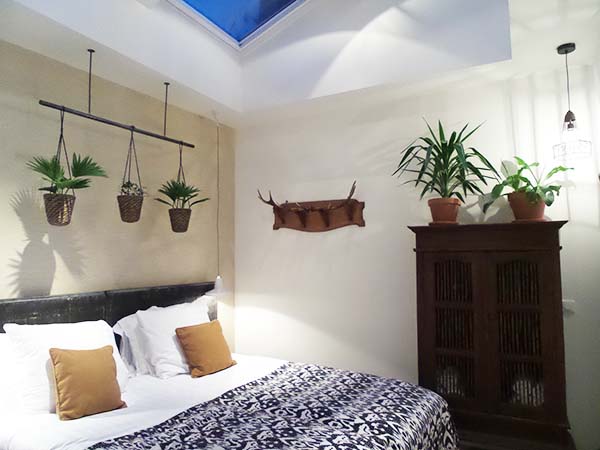 Hotel Dwars is heeft 9 unieke kamers die ontworpen zijn door de dames van Things I Like Things I Love. De stijl zou ik omschrijven als bohemian meets design en gaf mij direct het gevoel alsof ik thuis was. Hotel Dwars Amsterdam is niet alleen een leuke hotspot om te logeren, maar je kunt er ook de nodige inspiratie op doen voor je huis :-). Een inspirerende mix van vintage en design met kale bakstenen muren voor een industriële twist. Ik ben direct weg van de sprei op het bed met prachtige Aztec zwart / wit print.