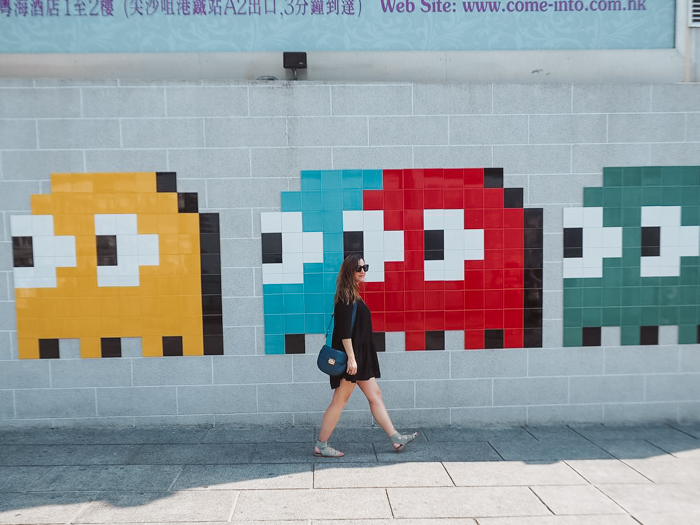 Als je van de Star Ferry komt dan zie je op de promenade direct enorme pacman street art van Space Invader. Ook heel Instagram-waardig en je hoeft er een stuk minder ver voor te reizen.
