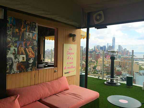 Als je naar de big ass topfloor outdoor roofterrace loopt, vind je op de muren in het trappenhuis de te gekke kleurrijke muurtekeningen van bekend street art artieste Aiko. Haar straatkunst vind je overal in NYC (over de hele wereld trouwens).