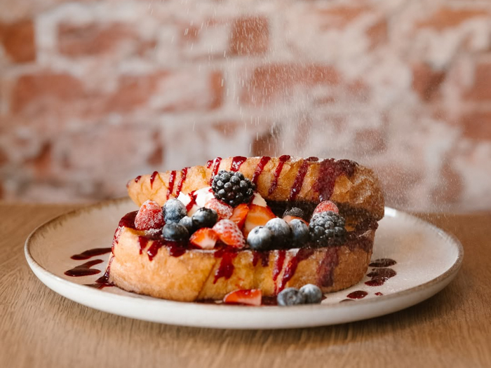 Bij Eetcafé Dolly schuif je vanaf 10.00 uur aan voor een ontbijt waar je meteen zin in hebt. De sfeer is gezellig en no-nonsense, precies wat je wilt om je dag rustig te beginnen. Op de kaart staan klassieke ontbijtgerechten als avo-toast, maar ook combinaties die net even anders zijn dan je gewend bent, zoals wentelteefjes met krokante kip en kimchi of zuurdesem met zalmtartaar van gemarineerde en gerookte zalm met savora-dillemayonaise.