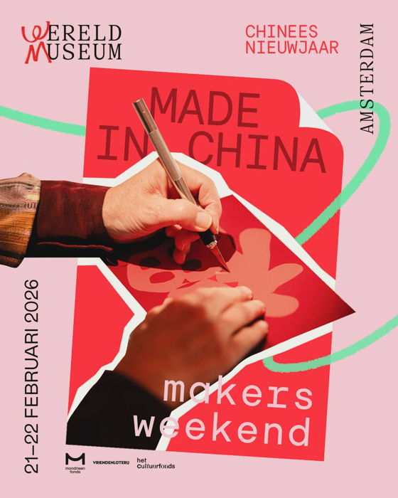 Op 21 en 22 februari staat het Wereldmuseum Amsterdam in het teken van MADE IN CHINA Makers Weekend, een tweedaags event waarin hedendaagse (Nederlands-)Chinese makers centraal staan. Tijdens dit weekend vier je het Jaar van het Paard met een programma vol design, workshops, talks, film en performances. Van levensgrote kalligrafie en keramiek tot dumplings vouwen, thee kloppen en fashion workshops: overal draait het om creativiteit en verhalen. Daarnaast duik je dieper in de veelzijdige maakcultuur van China in de tentoonstelling Made in China.