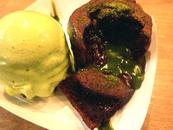 Als je nog boe of bah kunt zeggen, dan MOET je naar Chikalicious, een dessert-bar om de hoek. Ik at er een van de lekkerste nagerechtjes ever; de famous mint-chocolade lava cake. Moet wel 15 minuten in de oven, maar daarna krijg je je volle, pure chocolade souffle, gevuld met een zachte, warme saus die er langzaam uit druipt als stomende groene mint-lava wanneer je de fluffy buitenkant openbreekt. Met wat ijskoud romig mintijs als bijgerechtje. Mijn god wat een warmte, wat een opwinding, wat een combi. En wat zit ik vol… Lava Lava this!