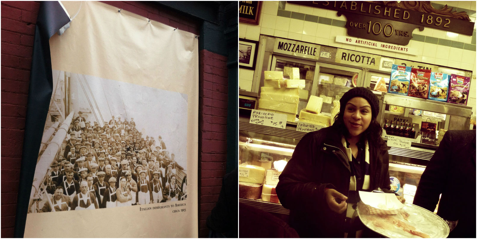Als we naar de eerste proeflocatie lopen (en we al snel de eerste te gekke street art spotten), vertelt Liz ons over de geschiedenis van Little Italy. Over de boten met immigranten en hoe het leven er destijds uitzag. Uiteraard had de maffia, “The Black Hand“, een grote impact op de buurtbewoners. Wel eens “The Godfather” gezien? Delen ervan werden onder andere hier in Little Italy opgenomen. Zelfs Adam Sandler heeft hier een film opgenomen; Big Daddy, featuring de echte Jorge van restaurant Puglia. Zie je het voor je? Een Mexicaan verkleed als Italiaan, die “O Sole Mio” voor je zingt… Dat gebeurt dus nog steeds hier. Verre van romantisch, wel best hilarisch. Liz kan je er alles over vertellen.