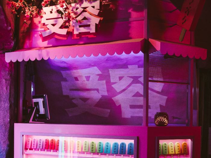 De private karaoke booths zijn te reserveren van 4 tot 20 personen in tijdsblokken van 2 uur. De booth beschikt over een tablet waarop je drankjes kunt bestellen en een karaoke-systeem met keuze uit meer dan 20.000 nummers.