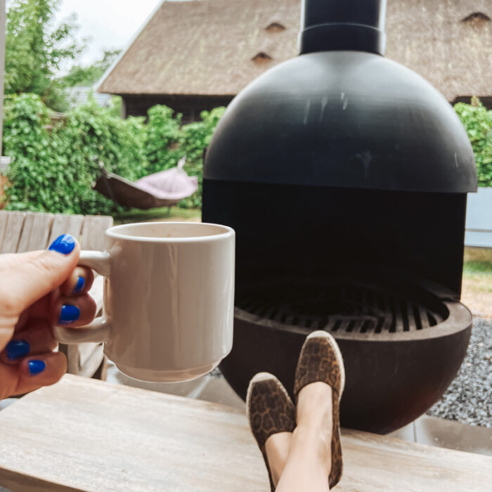 Bij Park Duynvoet hebben ze luxe 8-persoonsvilla’s met een fijne omheinde tuin en grote patio waar je heerlijk met zijn allen kunt zitten bij de buiten haard. Er zijn vier slaapkamers, met elk een eigen badkamer. Daarnaast een compleet uitgeruste keuken en een ruime woonkamer. Mijn favoriete plek in het huis was toch wel de grote overkapte patio met de buiten haard. Helaas was het weer toen wij in Schoorl waren wat wisselvallig, maar door de buiten haard hebben we toch heel fijn buiten gezeten. Als ik ooit zelf een tweede huis zou hebben, dan zou deze plek zeker zo’n overdekte patio met haard moeten hebben! Ik zie mezelf daar ieder seizoen wel zitten. In de ochtend met een kopje koffie, in de herfst met een dekentje en een warme choco en lekker om te borrelen na een middag in het bos of op het strand. Is het mooi weer tijdens je verblijf bij Park Duynvoet? Dan is de buitenkeuken dé plek om te koken ’s avonds. Haal kolen, steek de barbecue aan en geniet met zijn allen van het eten aan de lange buitentafel.