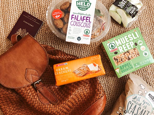 Op veel korte vluchten wordt er geen broodje meer uitgedeeld. Daarom zorg ik dat ik zelf altijd snacks bij heb die de lunch kunnen vervangen of ‘eind van de middag trek’ kunnen stillen. Voordat je van de airport immers op bestemming bent, ben je zo nog een paar uur verder. Mijn favoriete tussendoor snacks zijn: kruidkoek, muesli repen en rijstwafels. Wat ik tijdens de vlucht niet opeet neem ik eenmaal op bestemming als tussendoortje mee in mijn rugzak!