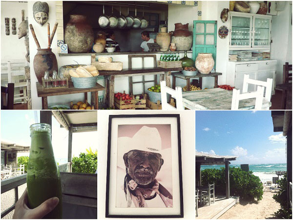 We verblijven in een beach bungalow bij Coco Tulum en op 5 minuten lopen over het strand zit Posada Margherita. De aankleding, het lekkere eten en het uitzicht over de Caribische zee, zo mooi en rustgevend. Hier ontbijt je lekker en very healthy. Neem de groene “heavy metal detoxifying” juice. Je huidje zal je er dankbaar voor zijn.