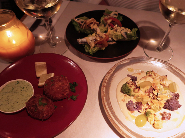 Bij het table d’hôte menu dat € 46,- kost en uit te breiden is met oesters vooraf en kaas na, worden mooie bijpassende wijnen geschonken. Natuurlijk kun je ook per fles bestellen. De wijnkaart zal blijven groeien met nieuwe vondsten, er staan nu onder andere wijnen op uit Frankrijk, Italië en Duitsland. Alcoholvrij wordt er naast fris ook Erdinger bier geschonken. De foto’s hieronder van het eten zijn een voorbeeld van de gerechten. Het menu is inmiddels gewisseld!