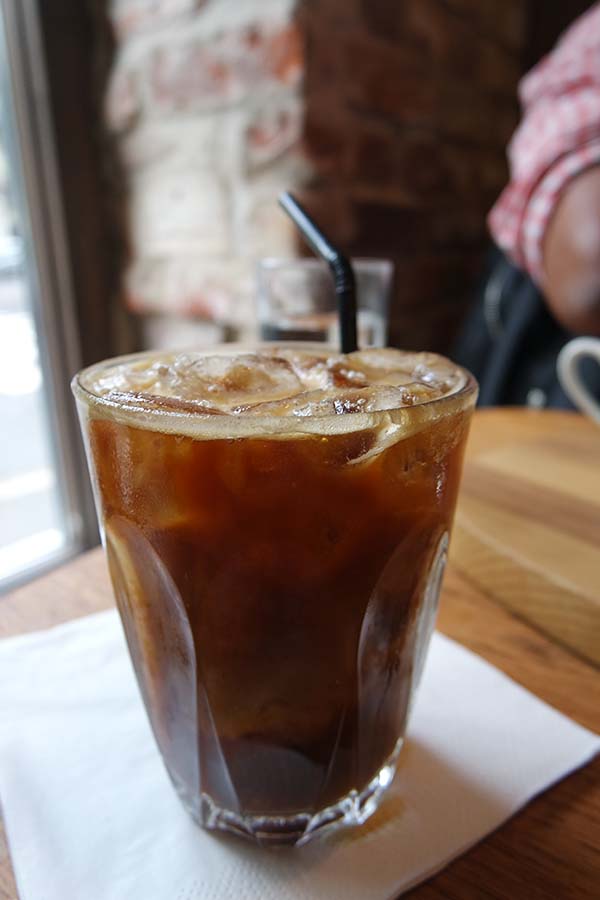 Bij Tim Wendelboe in Oslo kun je kiezen uit espresso, zwarte koffie en iced koffie. Allemaal bijzondere blends! Van Panama tot Kenya en Ethiopie. I had een heerlijke iced koffie!