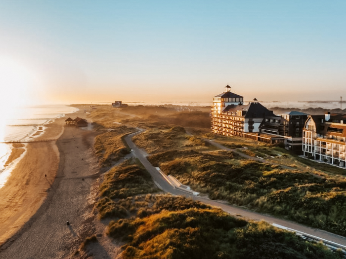 Uitzicht op zee, duinen voor de deur en wellness met het strand als achtergrond: hotel De Blanke Top ligt letterlijk op de top van een duin in Cadzand-Bad. De kamers zijn ingericht in rustige aardetinten en natuurlijke materialen, wat perfect aansluit bij de omgeving. De Spa & Wellness van maar liefst 1.400 m² is een echte eyecatcher en voelt als een luxe retreat, met panoramisch uitzicht over zee. Hoewel het hotel geliefd is bij stellen, is het ook verrassend geschikt voor gezinnen dankzij familiekamers en een speelruimte voor kinderen.